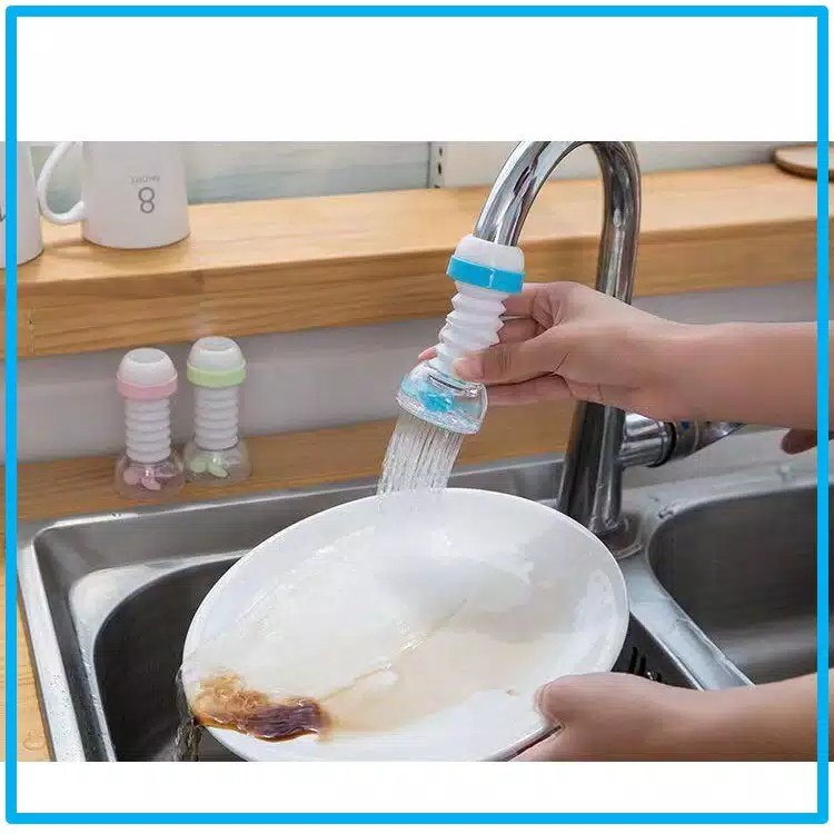 Sambungan kran ini flexible banget, bisa diputar hingga 360 derajat, membersihkan wastafel jadi mudah dan lebih bersih tentunya. Kran jadi bisa ditekuk dan digerakkan hingga ke sudut-sudut wastafel.Tidak hanya itu, sambungan kran ini dapat menghemat air hingga 50%, air yang keluar dari mulut sambungan kran berbentuk bunga air sehingga pemakaian air jadi lebih irit. Aliran air jadi terasa lebih deras, membersihkan piring atau makanan jadi lebih cepat dan air kran tidak muncrat kemana-mana.Material : PlastikSize : - 4.6 x 10 cm (kondisi panjang)- 4.6 x 7.8 cm (kondisi pe