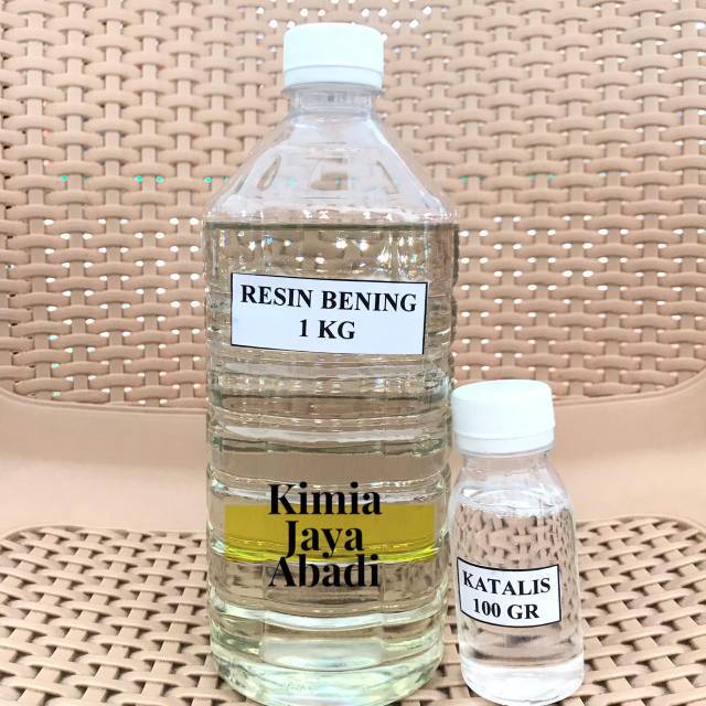 RESIN BENING 1KG & KATALIS 100 GRAMResin adalah bahan utama dalam pembuatan aneka barang dari resin/fiberglass. Selain itu dapat digunakan untuk membuat : hiasan , gantungan kunci , lem , penambal keramik bolong, bahan hardware pengganti kaca / plastik/ mika/ akrilikPerbandingannya :1 kg resin bening : 10 - 15 gr katalisNote :Penggunaan katalis yang terlalu banyak akan membuat resin lama kering ( lengket) , jika terlalu sedikit akan memperlama waktu pengerasan resin.Lebih baik jika di diamkan semalam agar benar-benar kering dan siap lepas dari cetakannya. Q&A yg sering ditanyakan :Q : Warnanya kok kelihatan kuning apa hasil tetap bening?A : Dikarenakan ada perbedaan cahaya saat foto. Warna yg di botol tidak mempengaruhi hasil jadi.Hasil yang diberikan tetap bening sudah dibuktikan dan tentunya kualitasnya bagus karena sdh teruji puluhan tahunBarang ready Silahkan di order*Nb:Utk Pesanan pengiriman luar pulau jawa harap tidak langsung order, diharapkan bisa menghubungi via message terlebih dahulu*Khusus Resin pengiriman luar pulau tidak bisa menggunakan reguler. Mohon untuk chat admin terlebih dahulu. Terima