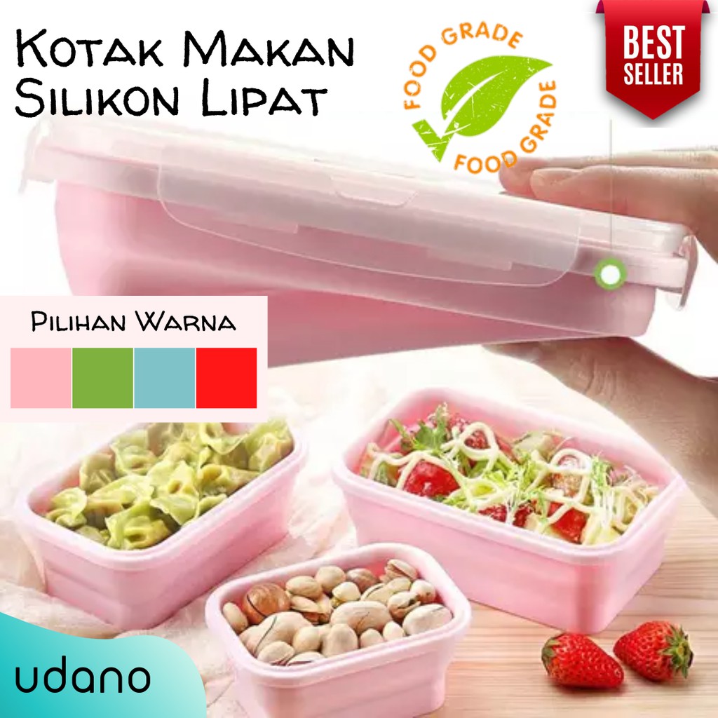 Menghemat ruangan sampai 60%Kotak Makan Lipat Silikon UDANO-Ringan dan portabel, dapat digunakan berkali-kali-Desain lipat, hemat ruang, mudah dibawa.-Bahan silikon food grade, tidak beracun dan tidak berasa, aman, dan ramah lingkungan.-Ketahanan suhu -40℃ hingga 230℃ Dapat dibekukan dan dapat dipanaskan dalam microwave (harus dengan membuka katup ventilasi)-Efek penyegelan yang baik, bisa digunakan untuk pengawetan makanan-Memiliki berbagai kegunaan : untuk kotak makan siang, wadah penyimpananSpesifikasi :- Material : Silikon ( FOOD GRADE / BPA FREE)- Kapasitas : 350ML, 500ML, 800 ML, dan 1200 ML- Microwave Save & Freezer Save, ANTI PECAH!UKURAN:350ml: 13.1 cm x 9.7 cm x 6.3 cm500ml: 16.5 cm x 11 cm x 6.3 cm800ml: 18.5 cm x 12 cm x 6.6 cm1200ml: 21.5 cm x 13.5 cm x 7.2 cmUKURAN JIKA DILIPAT:350ml: 13.1 cm x 9.7 cm x 3 cm500ml: 16.5 cm x 11 cm x 3 cm800ml: 18.5 cm x 12 cm x 3 cm1200ml: 21.5 cm x 13.5 cm x 3