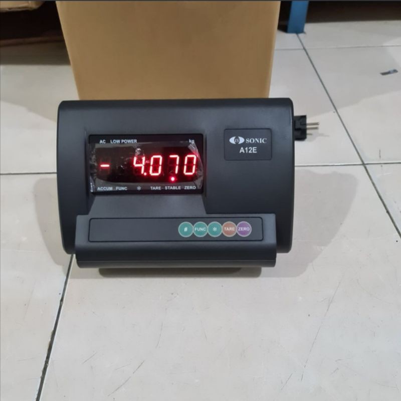 INDICATOR A12eMerk : SONICTipe : A12EWarranty : 1tahunMade in : chinaFEATURES : SONIC A12E INDICATORS- Use inner code to replace weight observing and analysis tolerance- Software to strength anti-vibration ability- Zero-tracking, zero range setup (auto/manual) - Setup digital filter intensity, range and stable time- Counting function with unit data save protection in case of power off - Peak holding functionOptional function : Kg/lb switch function - Animal scale function (A1-5 only)- Two fixed-value outputs function with TTL outputSPECIFICATIONS : SONIC A12E INDICATORSInput signal range : -10mV ~ 15mVGrand : 1/30000/6000/7500Converting speed : 40 times/secondA/D code : 360000Non linearity : 0.03%Drift : 0.03%Interval : 1/2/5/10/20/50Display : 0 999999Optional interface : RS-232C serial communicationTransmission distance : RS-232C 30 metersPower supply : AC 180V-240V 49-51HzHumidity : 85 RHFuse :