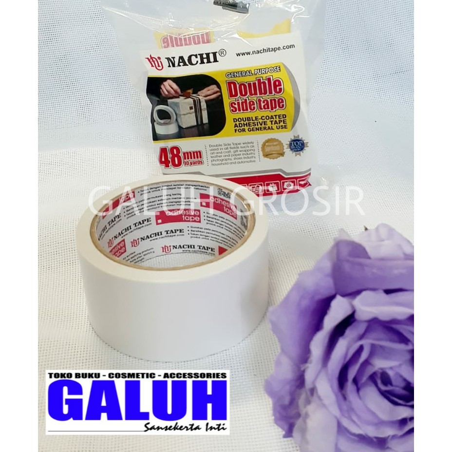 *Barang Ready*Double Side Tape 2Inch 48mmx10yard NachiIsolasi dua sisi yang menggunakan kertas tisu atau bahan yang mudah dikelupas. Dapat digunakan untuk berbagai macam bidang, seperti rumah tangga, fotografi, industri kertas, industri sepatu, aplikasi splicing, dll.Ukuran : 48mmx10