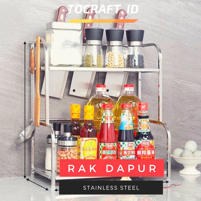 Sale Perlengkapan di Kabupaten Bantul Rak Bumbu Dapur Stainless Steel 2 Tingkat Tempat Peralatan Masak Pisau Gula Garam dari Tocraft.id Kota Tangerang