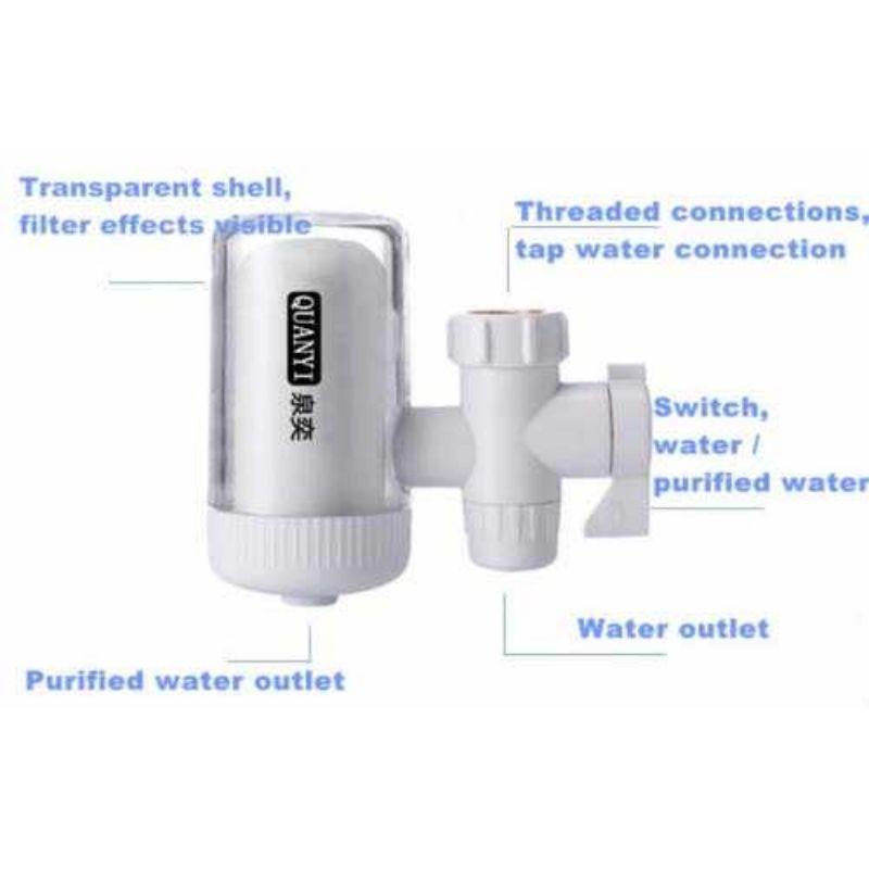 Filter Penyaring Keran Air - QY-201Filter penyaring keran air ini berfungsi untuk menyaring kotoran-kotoran berupa benda dan juga micro organisme yang terdapat dalam air keran. Lindungi keluarga Anda dari bahaya air kotor yang dapat menimbulkan penyakit.Multi Layer FitrationFilter ini menyaring air melalui beberapa tahap penyaringan sehingga air dijamin bersih dari kotoran dan bakteri penyakit.Plastic FilterBahan dari filter penyaring air ini adalah plastik sehingga awet untuk digunakan.Easy InstallationPemasangan sangat mudah dan tidak memerlukan perlengkapan tambahan. Anda tinggal mencolokkan filter ini ke ujung kepala keran air dan alat ini langsung berfungsi.CompatibilityDapat digunakan keran air yang memiliki ukuran kepala 16-19 mm.Barang-barang yang Anda dapat dalam kotak produk:1 x Filter Penyaring Keran AirFilter Penyaring Keran Air - QY-201MaterialPlastik FilterDimensi10.8 x 5.2 x 10.5