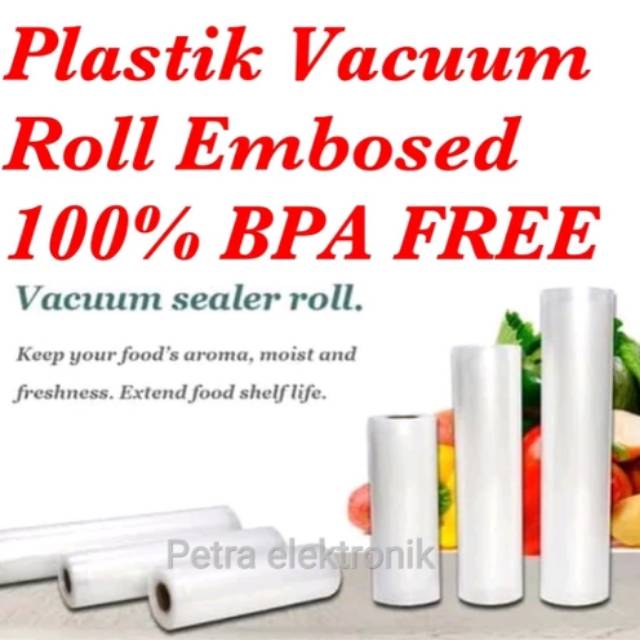 Plastik Vacuum ini sudah BPA FREE (Food Grade) dan sudah medapatkan sertifikat dari FDA (FDA CERTIFICATE), jd sangat aman untuk menyimpan makanan.Hati2 dalam membeli plastik untuk makanan, pastikan memang plastik sudah 100% BPA FREE PLASTIK VACUM / VACUUM Plastik yg di design khusus untuk mesin Vacuum Sealer, Dengan MOTIF TOTOL (KASAR) DI BAGIAN BELAKANG NYA!!! Teman-Teman yang membutuhkan plastik untuk pembungkus produk makanan, keripik, powder, herbal, frozen dan lain lain, supaya lebih awet, tahan lama, tidak masuk angin, lebih bermutu, sebaiknya menggunakan plastik khusus vacum.Bedanya plastik vacum dengan plastik biasa, adalah plastik vacum lebih tahan panas, kedap udara yang membuat produk tidak mudah masuk angin.Plastik vacuum ini terbuat dari bahan Plastik nilon.*Untuk menyimpan/ mengemas produk FROZEN/ Beras/ Kacang2an dll.Ukuran 20 x 500 cm (Lebar plastik 20 cm)Tebal 80 micronIsi 1