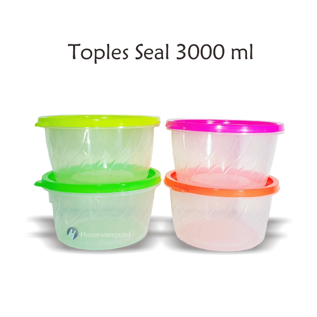 Toples Seal 3 literToples berbahan plastik food grade..Barang baru..Harga sudah untuk 6 pcs + free kardus untuk pengiriman..Barang dicheck sebelum dikirim, mohon tambahkan bubble warp untuk keamanan pengiriman..Toples berbentuk lingkaran dengan alas bening dan tutup bewarna..Kualitas bagus, tahan lama dan tidak berbau..Cocok untuk tempat snack dan souvenir acara..Warna tutup tersedia sesuai stok kiriman pabrik..Dikirim sebisa mungkin warna rata sesuai stok..Mohon maaf tidak bisa request warna..Membeli = setu