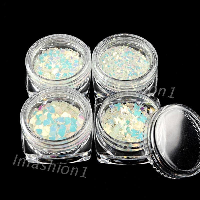 #4 #Style #Luminous #Sequins #Glow #In #the #Dark #Glitter #Fluorescent #Sequin #Resin #Craft4 Styles Luminous Sequins Glow In the Dark Glitters Fluorescent Sequins Resin Jewelry Findings Nail Art Decor Craft ToolFeature:Luminescent Assorted Shapes Glow In Dark Party Festival Nail Decorations Nail Art Acrylic Use DIY KitCan be used with UV gel, acrylic powder for nail tips decoration. Put it in the sunshine or the lamp and then it can be shine in the dark.Luminescent nail Sequin make you shine in the dark, pretty charming.There are four kinds of shape to choose (Octagonal, heart shape, five star, butterfly), Just put the Luminous sequins under sunshine for some hours, the effect will last a long time in the dark, really environmental and practical.Specification:Material: SequinsType: Octagonal, heart shape, five star, butterflyColor: As picture showsSize: Diameter:1-3 mm1-3 Gram one boxQuantity: 4 BottlesNote:1.Please allow 1-3cm error due to manual measurement. pls make sure you do not mind before you bid. 2.Due to the difference between different monitors, the picture may not reflect the actual color of the item. Thank you! Package includes(without retail package):4 Bottles x Luminous Seq