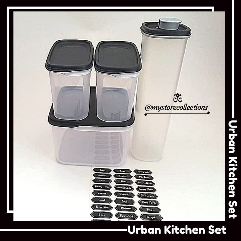 Urban Kitchen SetTerdiri dari• Cooking Oil Dispenser (1) 1.1L // d: 8.7 cm, t: 24.5 cm• Smart Saver Square 2 (1) 2.5 L // 18.8 x 18.8 x 11.7 cm• Smart Saver Oval 2 (2) @1.1 L // 18.8 x 9 x 1.7 cmFree Stiker 1 PcsFitur• Ahli penyimpanan yang bikin dapur selalu tertata rapi setiap hari• Nuansa warna monokrom bikin dapur tampil minimalis dan modern• Wadah ketat udara menyimpan dan menjaga kualitas bahan makanan yang disimpan• Tersedia dengan ragam ukuran sesuai kebutuhan dan bisa ditumpuk untuk menghemat ruang simpan• Dilengkapi stiker untuk menandai isi bahan lebih mudah terlihatNB: MOHON TANYAKAN KETERSEDIAAN BARANG TERLEBIH D