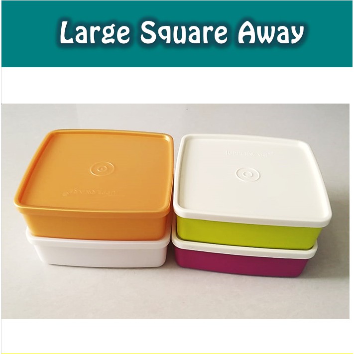 Large Square Away (1 Pcs) Lunch Box Bekal Makan TupwrKapasitas: 660ml / 15 × 14.5 × 4.9cmKegunaan : Wadah Bekal Makanan serbaguna, seal kedap. NB: MOHON TANYAKAN KETERSEDIAAN BARANG TERLEBIH DA