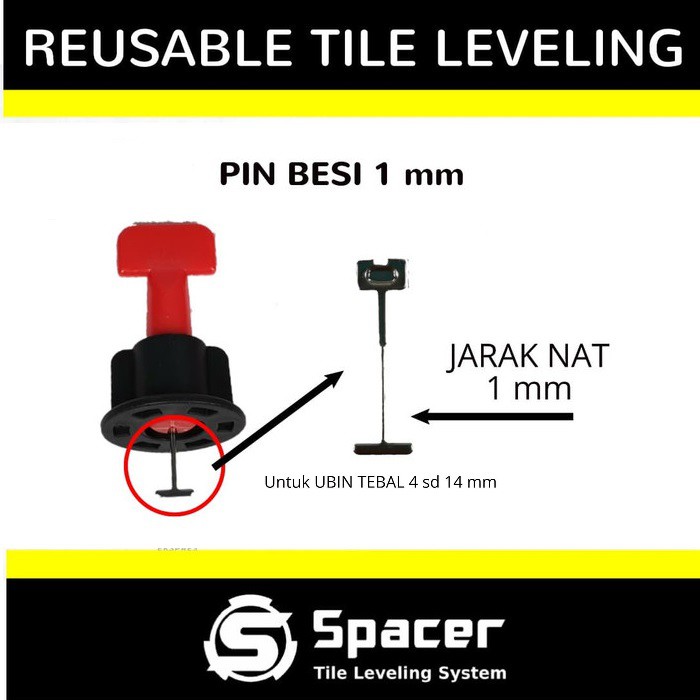 PIN BESI PENGGANTI REUSABLE TILE LEVELING JARAK NAT 1MMJarak Nat 1mm untuk Reusable Tile Leveling isi 50pcsIsi = 50 PcsJarak Nat = 1 mmTebal ubin = 4 mm s/d 14 mmBahan = Baja Anti Kar