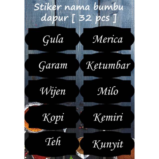 * ukuran gambar 5cm × 3cm* waterproof ya * minimal order 32pcs [ selebihnya kelipatan ] * sudah di gunting tinggal ditempel * sticker nama bumbu bisa direquest * silakan isi di pesan untuk jenis font/huruf dan juga nama-nama bumbu yang ingin dicetak ... happy shopp