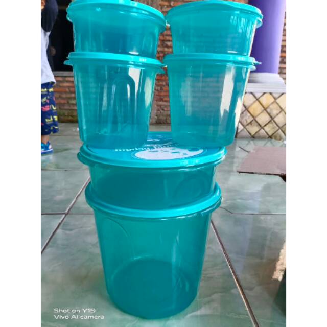 1 set isi 6 pcs dengan kapasitas- 1 pcs Wadah berbentuk bulat uk. 5.250 ml- 1 pcs Wadah berbentuk bulat uk. 2.000 ml- 2 pcs Wadah berbentuk bulat uk. 1.100 ml- 2 pcs Wadah berbentuk bulat uk. 6